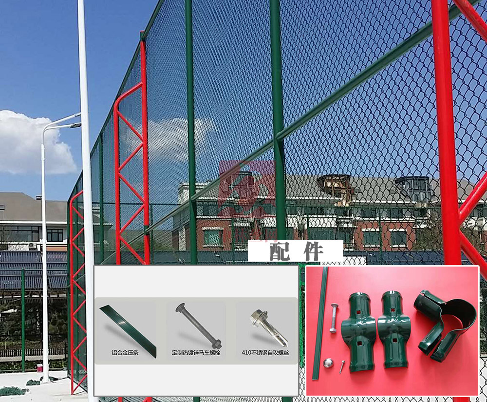 出厂配件:PVC围网、立柱、横梁、抱卡、扁铁、钻尾螺丝。